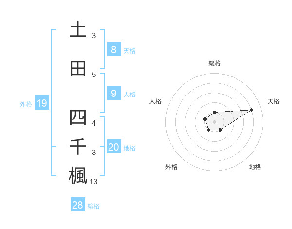 土田 四千楓さんを姓名の画数から五運を鑑定