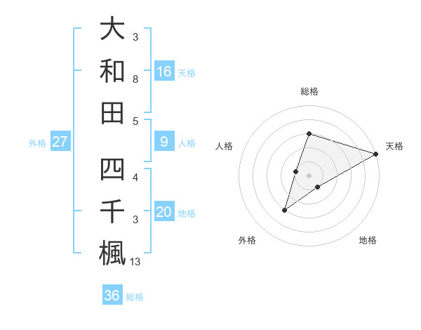 大和田 四千楓さんを姓名の画数から五運を鑑定