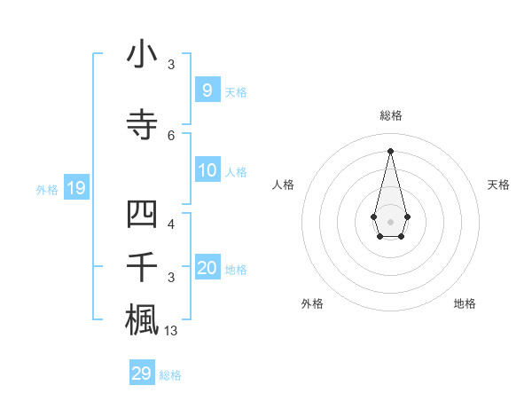小寺 四千楓さんを姓名の画数から五運を鑑定