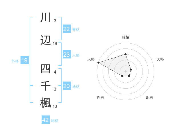 川辺 四千楓さんの総格は42画の3点!