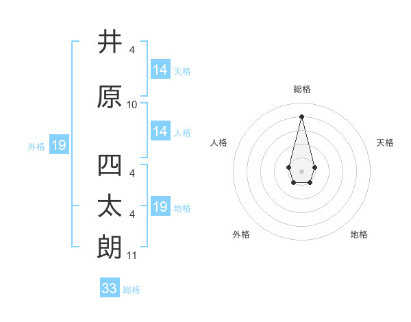井原 四太朗さんの総格は33画の4点!