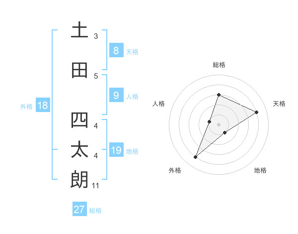 土田 四太朗さんを姓名の画数から五運を鑑定