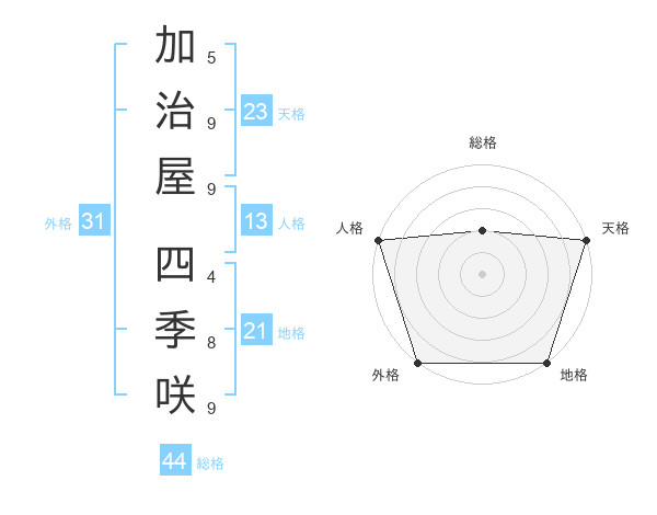 加治屋 四季咲さんを姓名の画数から五運を鑑定