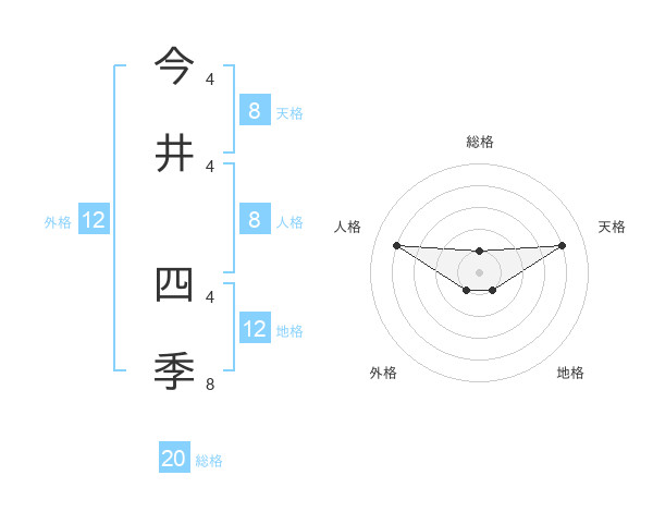 今井 四季さんの天格は8画の4点!