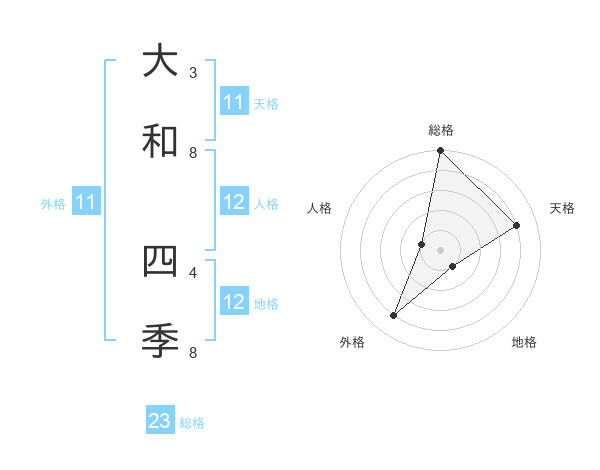 大和 四季さんの総格は23画の5点!
