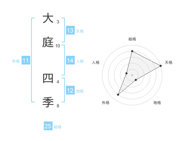 大庭 四季さんの外格は11画の4点!