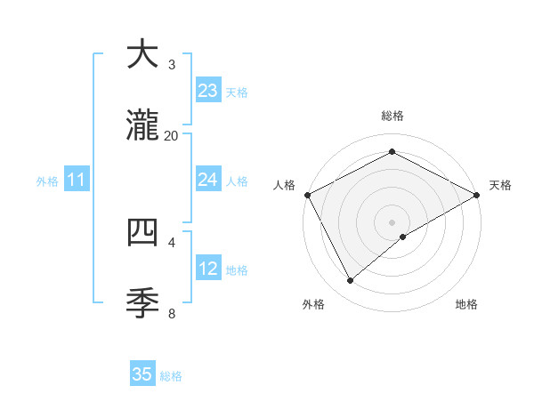 大瀧 四季さんを姓名の画数から五運を鑑定