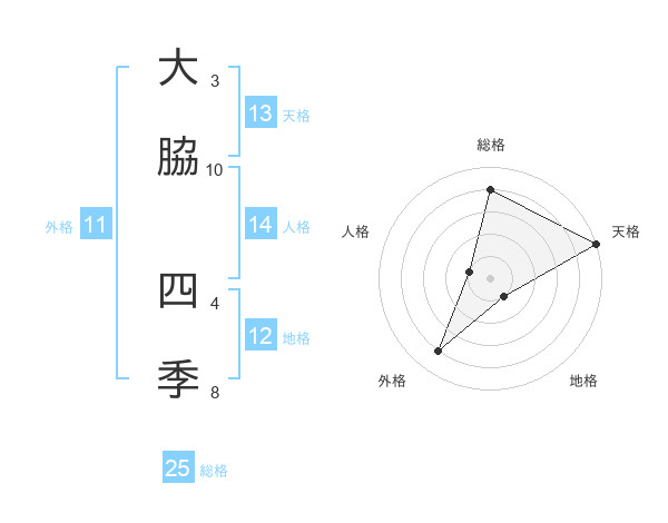 家系が持つ宿命的な運勢を表します。祖先から受け継いだ苗字ですので自分の力が及びません。家柄を象徴します。