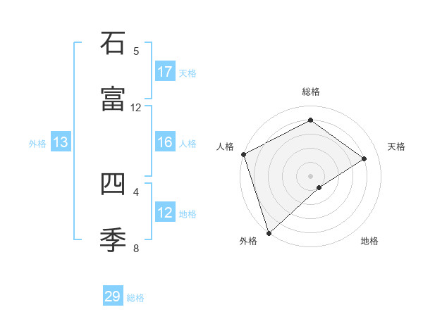石富 四季さんの総格は29画の4点!