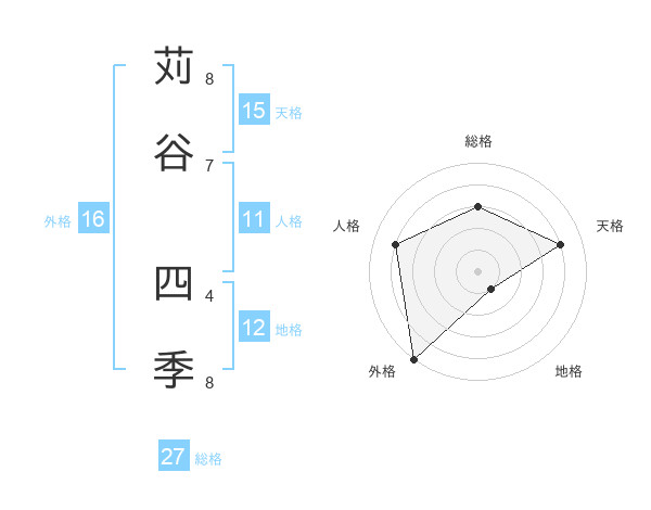 苅谷 四季さんを姓名の画数から五運を鑑定