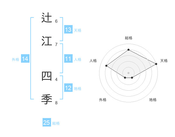 辻江 四季さんの総格は25画の4点!