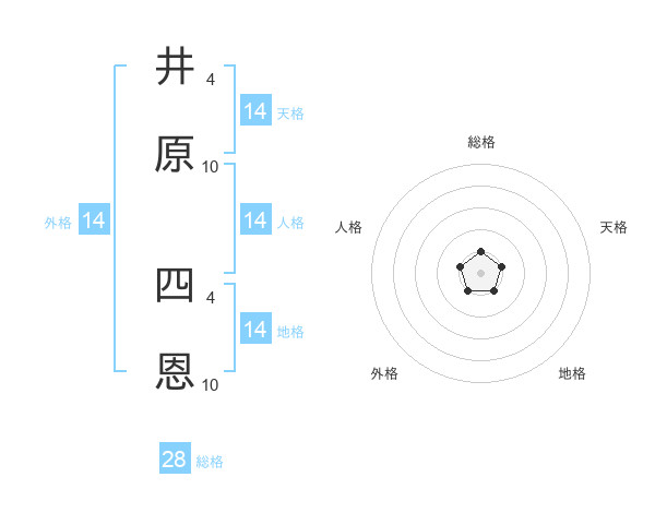 井原 四恩さんの地格は14画の1点