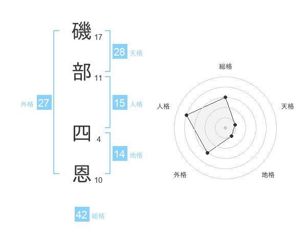 磯部 四恩さんを姓名の画数から五運を鑑定