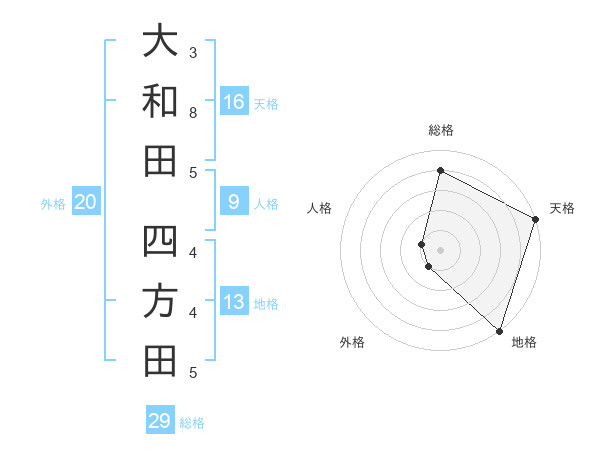 大和田 四方田さんを姓名の画数から五運を鑑定