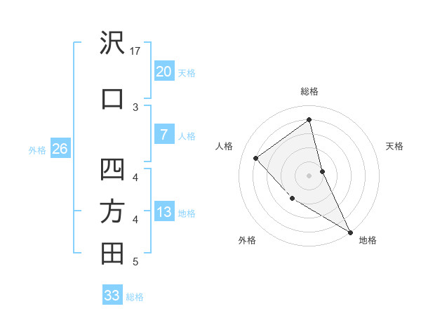 沢口 四方田さんの総格は33画の4点!