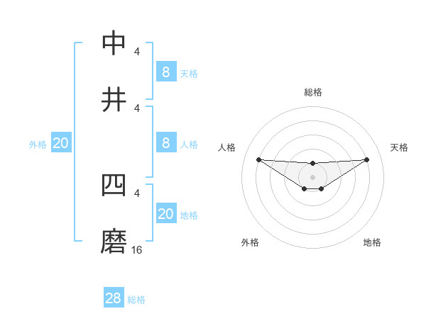 中井 四磨さんの天格は8画の4点!