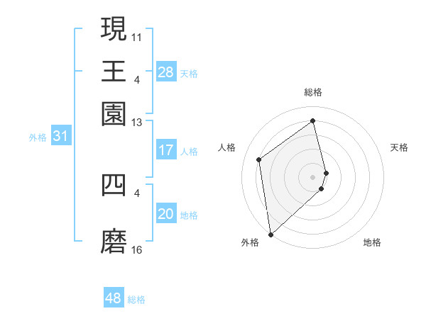 現王園 四磨さんを姓名の画数から五運を鑑定