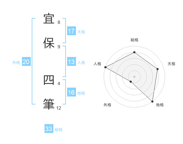 宜保 四筆さんの総格は33画の4点!