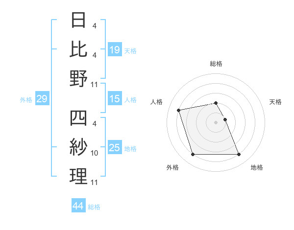 日比野 四紗理さんを姓名の画数から五運を鑑定