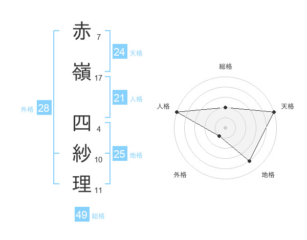 赤嶺 四紗理さんの地格は25画の4点!