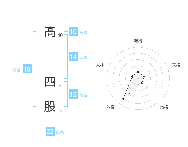 髙 四股さんの総格は22画の1点!