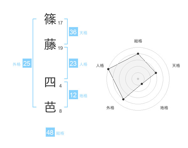 篠藤 四芭さんを姓名の画数から五運を鑑定