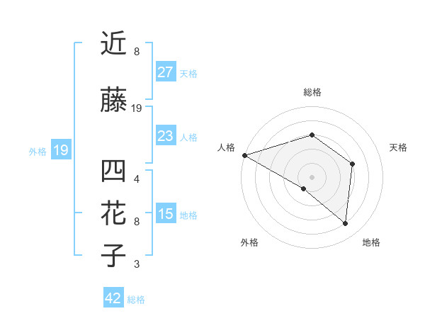 近藤 四花子さんを姓名の画数から五運を鑑定