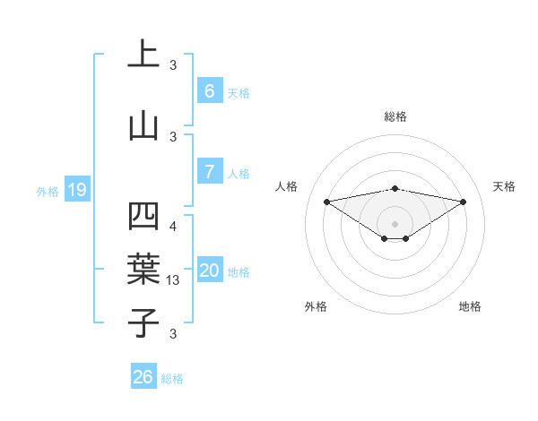 上山 四葉子さんを姓名の画数から五運を鑑定