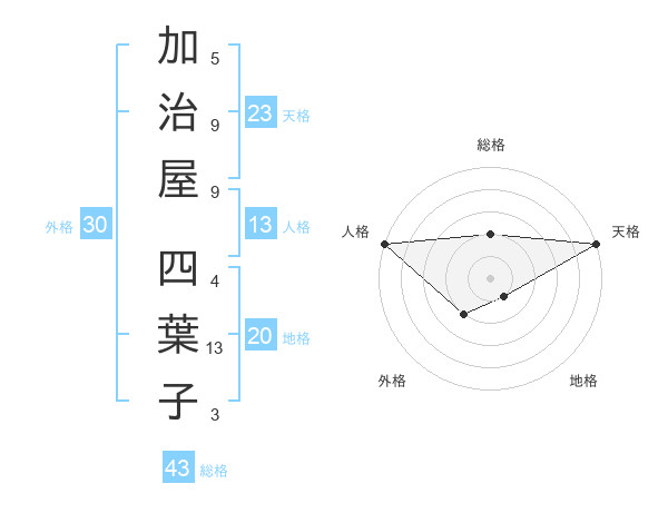加治屋 四葉子さんを姓名の画数から五運を鑑定