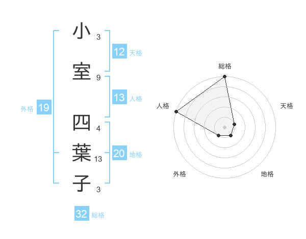 小室 四葉子さんを姓名の画数から五運を鑑定