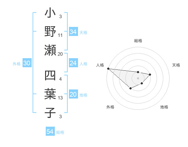 小野瀬 四葉子さんを姓名の画数から五運を鑑定