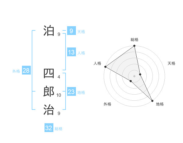 泊 四郎治さんの総格は32画の5点!