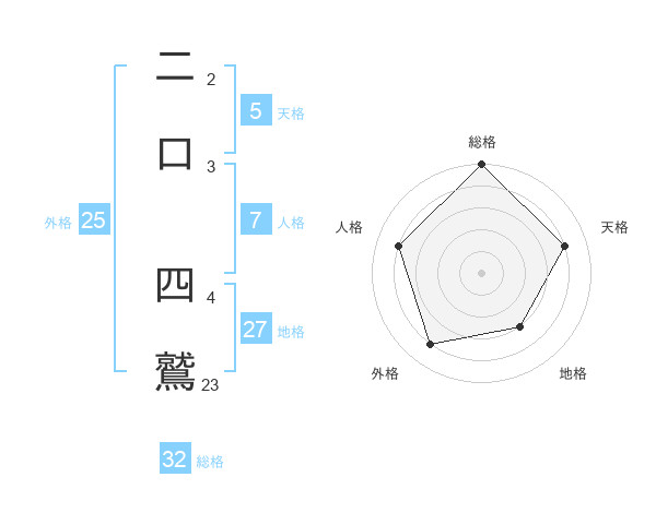 二口 四鷲さんの総格は32画の5点!