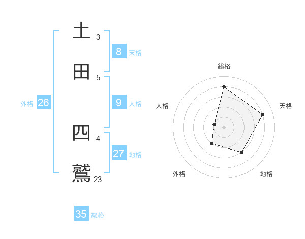 土田 四鷲さんを姓名の画数から五運を鑑定