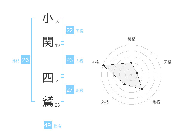 小関 四鷲さんを姓名の画数から五運を鑑定