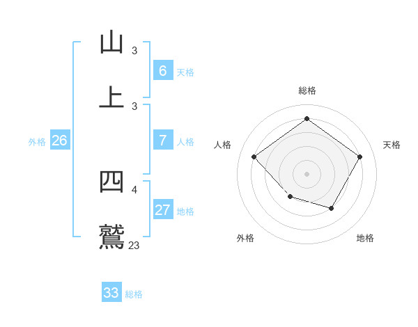 山上 四鷲さんを姓名の画数から五運を鑑定