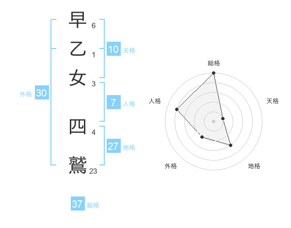 早乙女 四鷲さんを姓名の画数から五運を鑑定
