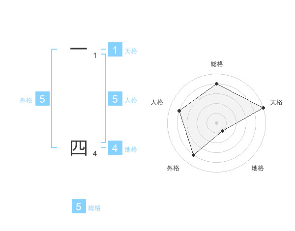 一 四さんの総格は5画の4点!
