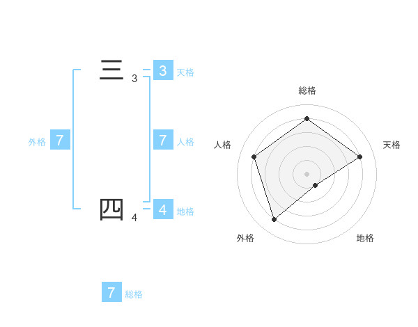 三 四さんの総格は7画の4点!
