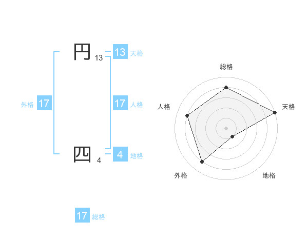 円 四さんの総格は17画の4点!