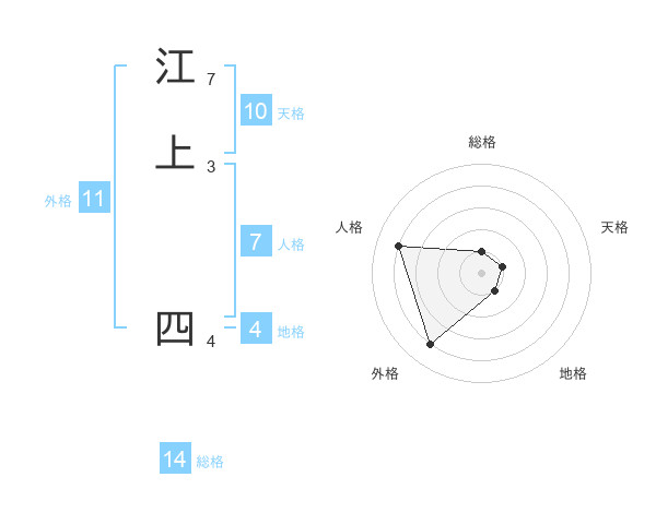 江上 四さんの外格は11画の4点!