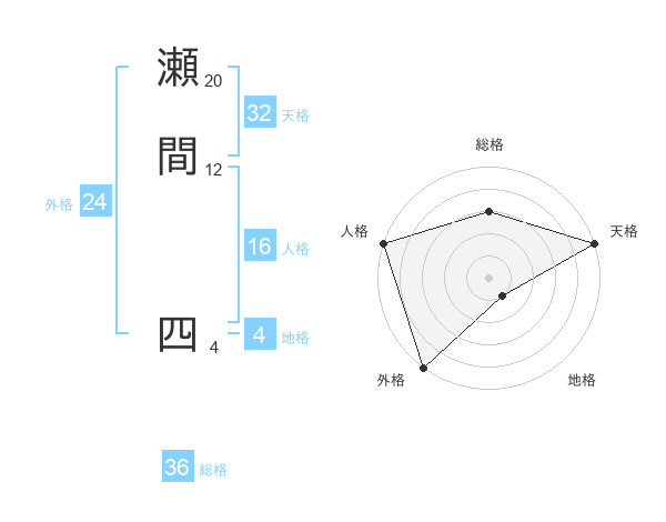 瀬間 四さんの天格は32画の5点!