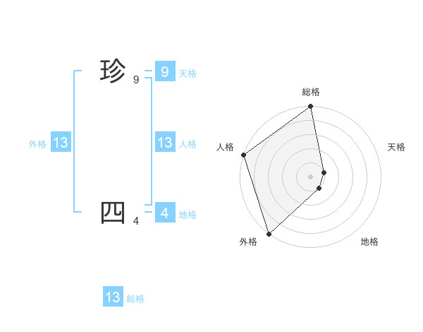 珍 四さんの外格は13画の5点!