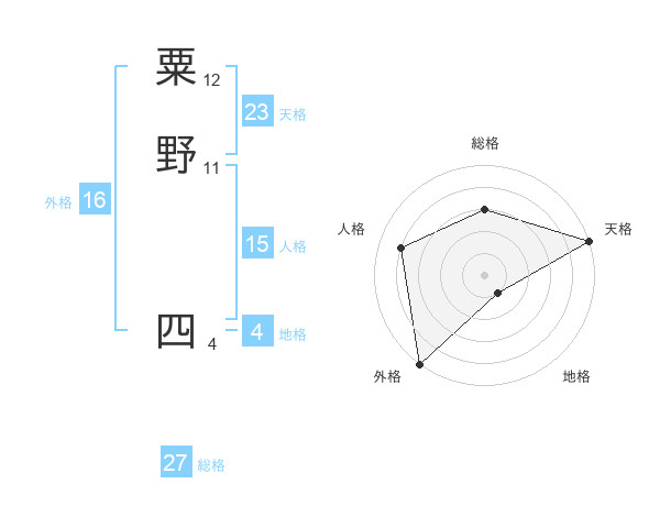 家系が持つ宿命的な運勢を表します。祖先から受け継いだ苗字ですので自分の力が及びません。家柄を象徴します。