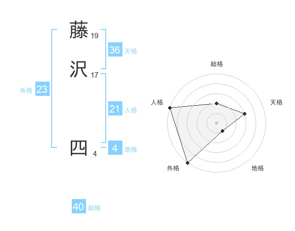 藤沢 四さんの総格は40画の2点!