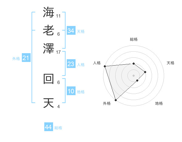 海老澤 回天さんを姓名の画数から五運を鑑定
