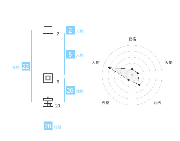 二 回宝さんの総格は28画の1点!
