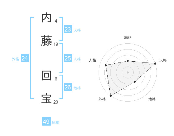 内藤 回宝さんを姓名の画数から五運を鑑定