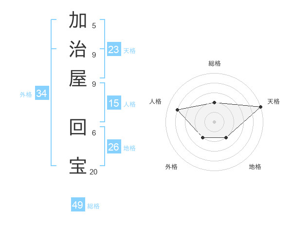 加治屋 回宝さんを姓名の画数から五運を鑑定