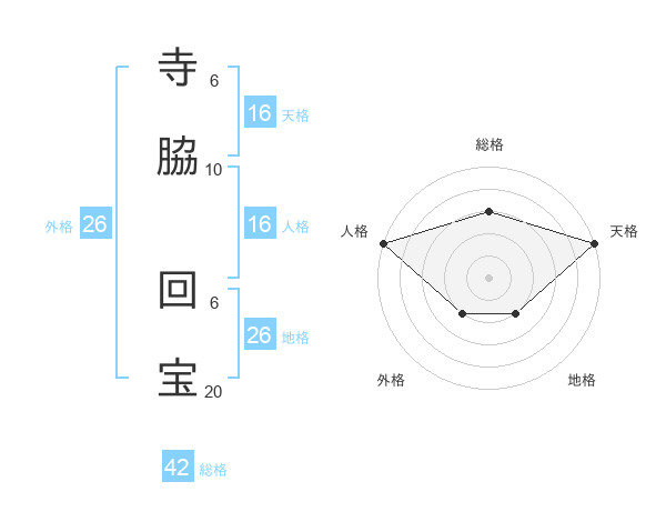 寺脇 回宝さんを姓名の画数から五運を鑑定